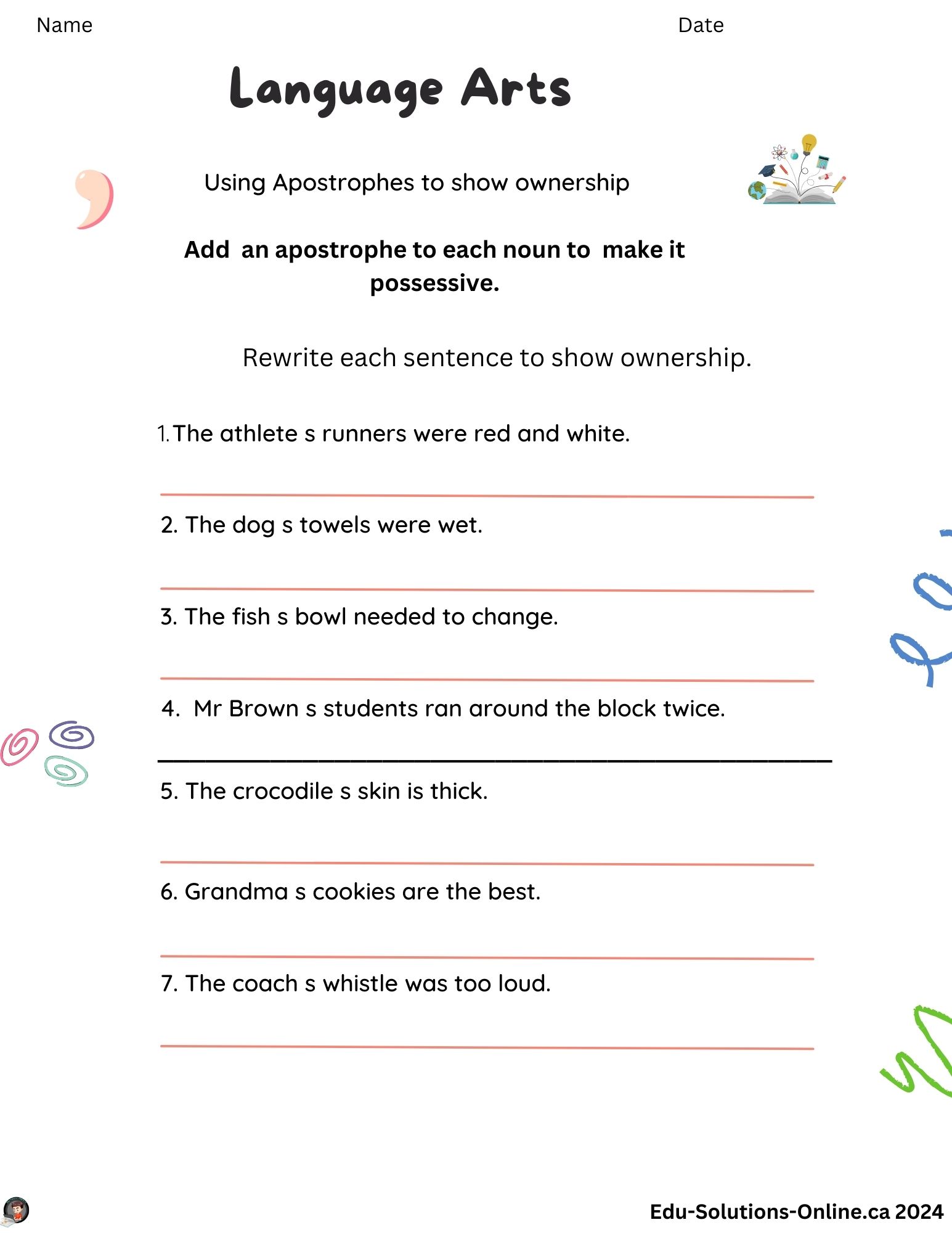 Grade 3 Language Arts- Using Apostrophes to show possession-5