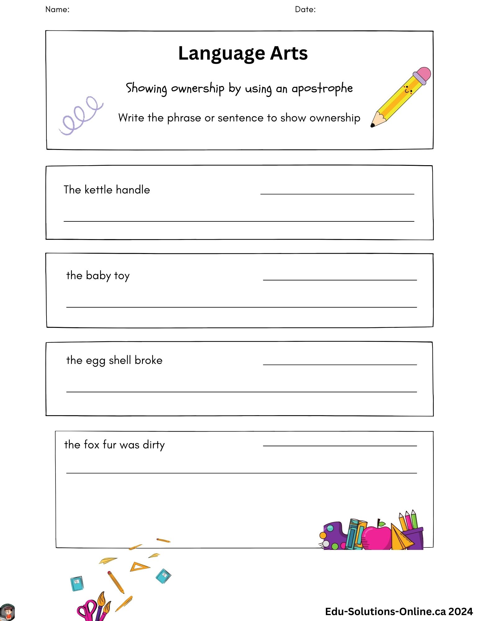 Grade 3 Language Arts-Using Apostrophes to show possession-4