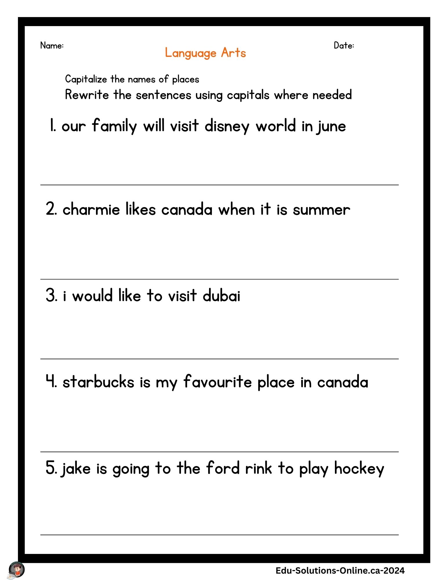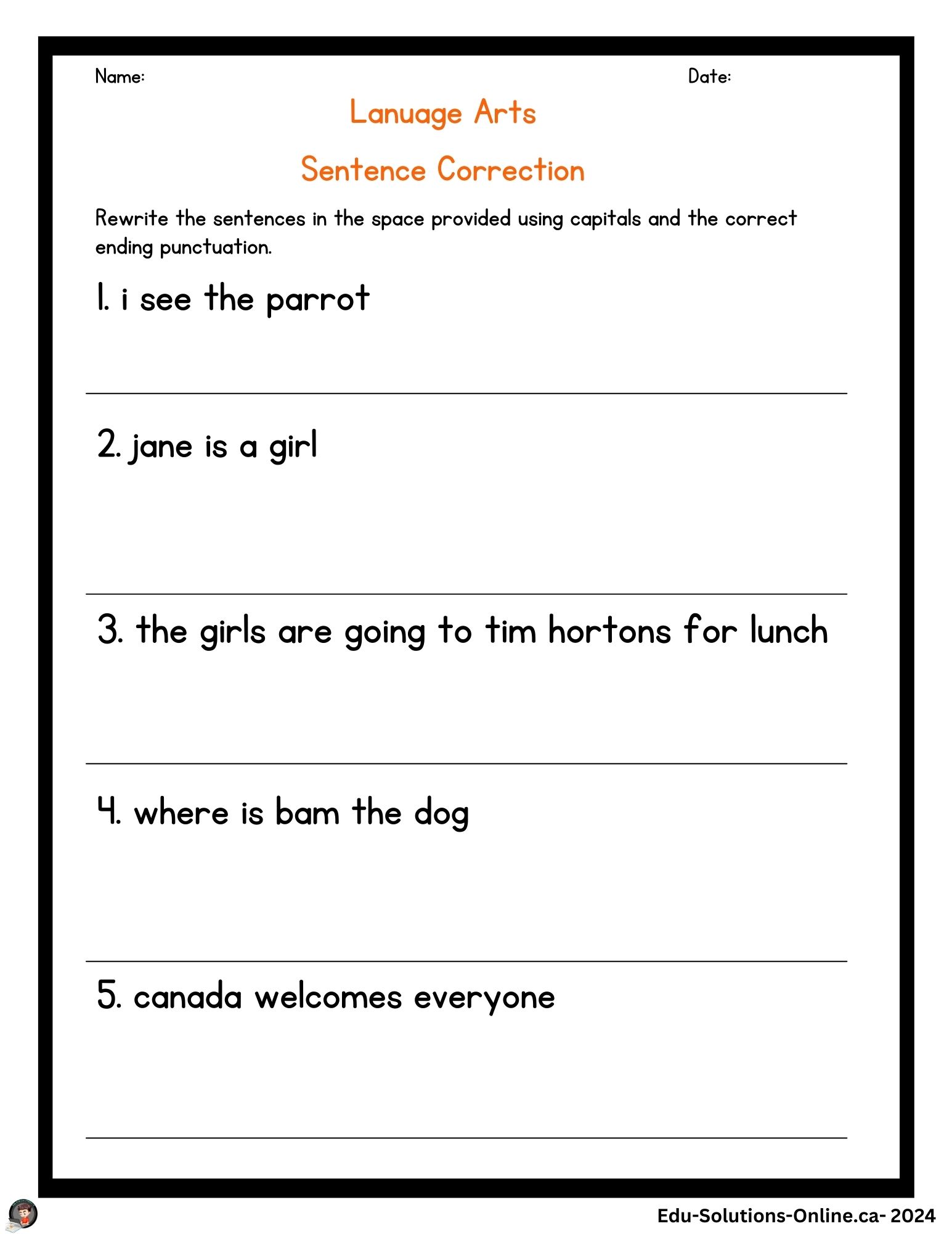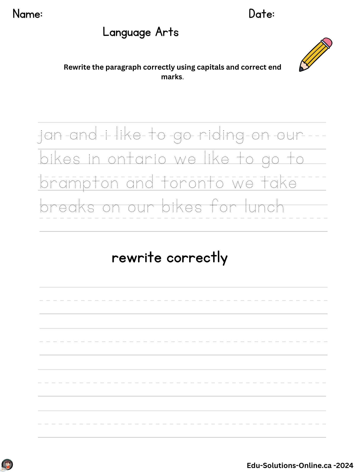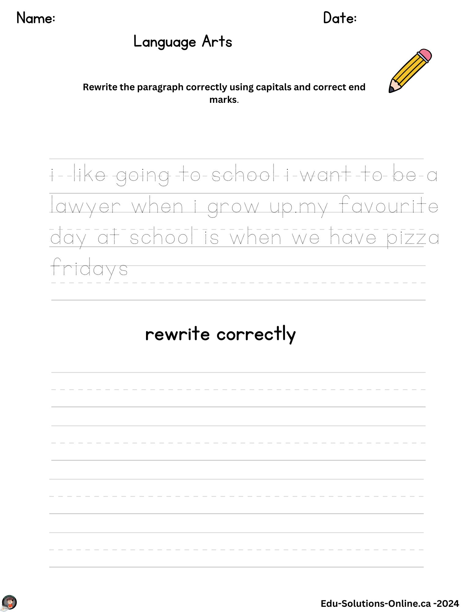 Rewrite the paragraph correctly using capitals and correct end marks.