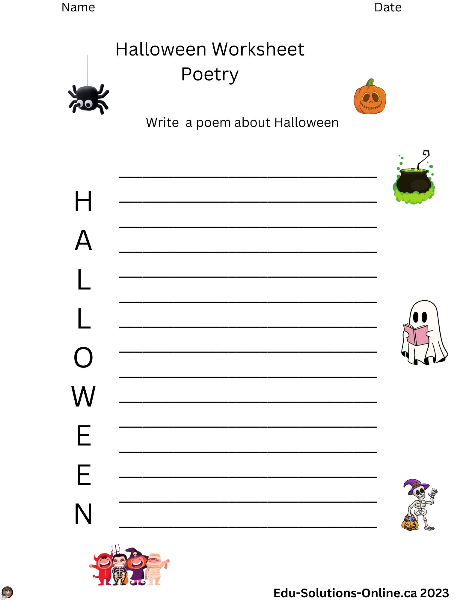 Holiday Worksheet. Halloween 5 (Kindergarten to Grade 3)