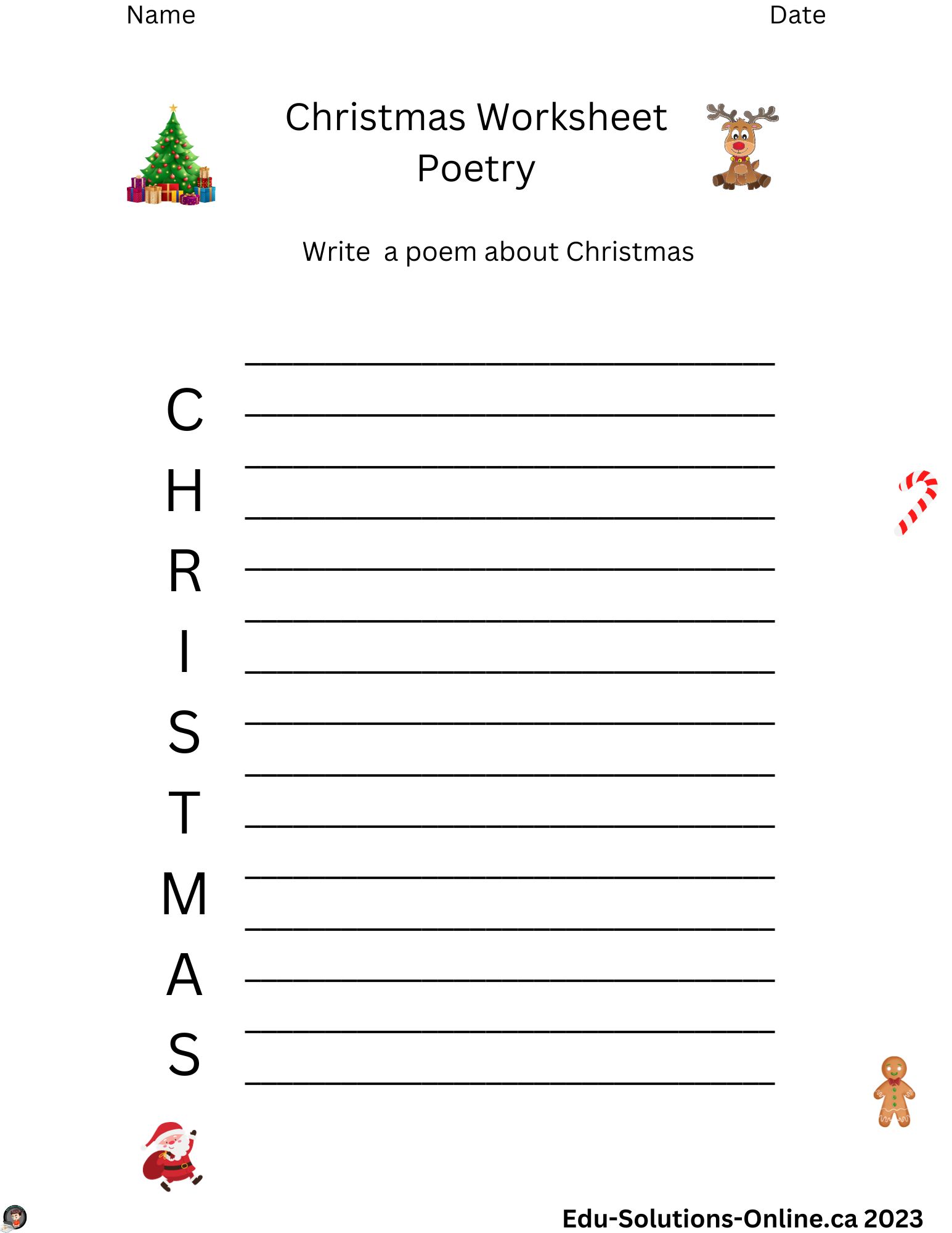 Holiday Worksheet . Christmas 5 (Kindergarten to Grade 5)